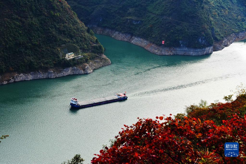11月24日,輪船航行在紅葉映襯下的長(cháng)江巫峽水域。