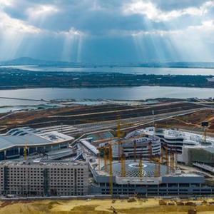 11月24日拍攝的建設中的彌蒙高鐵紅河站內景。