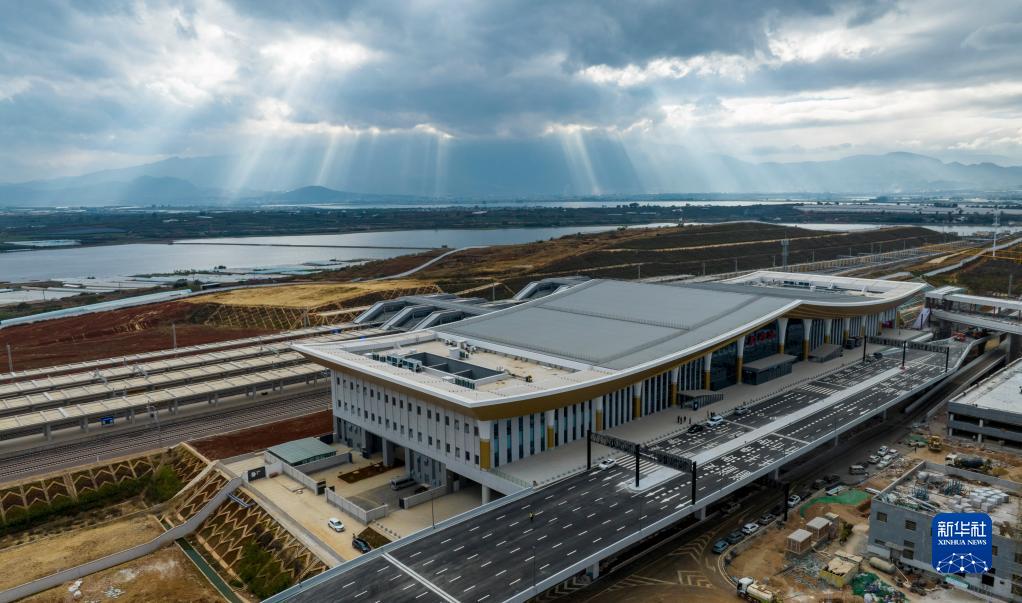 11月24日拍攝的建設中的彌蒙高鐵紅河站(無(wú)人機照片)。