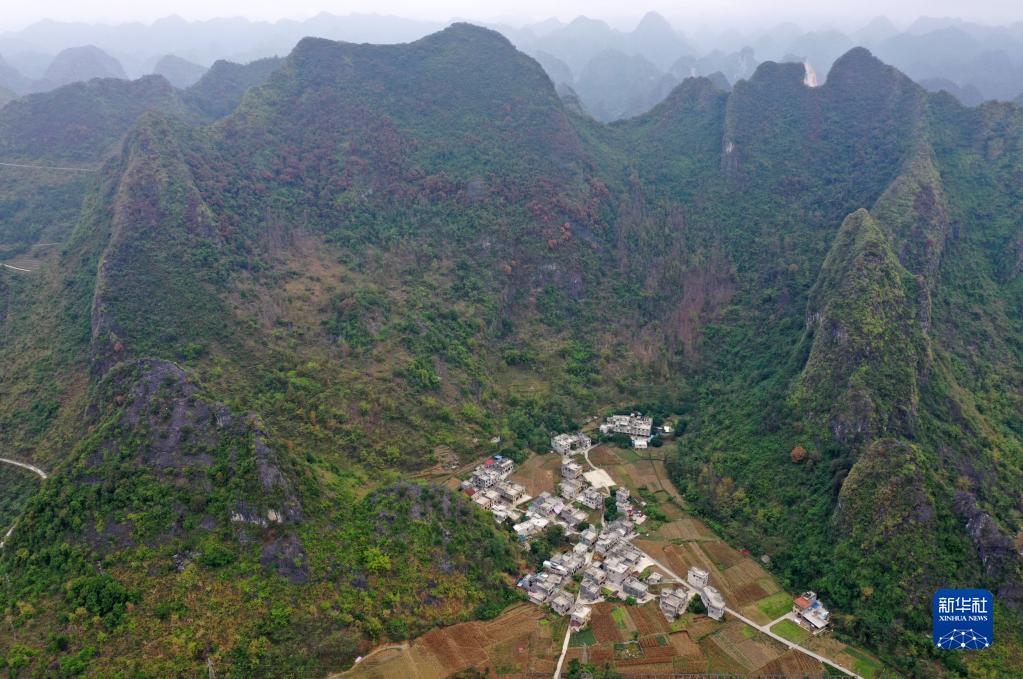 這是王金寶家所在的廣西河池市都安瑤族自治縣大興鎮九頓村那內屯(11月24日攝,無(wú)人機照片)。