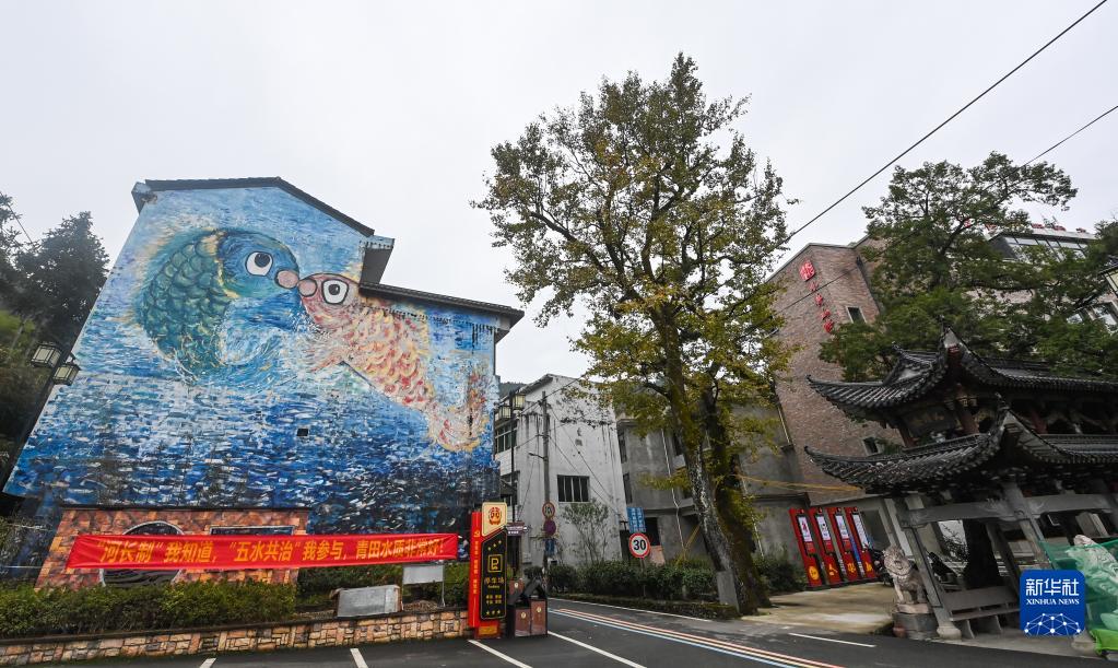 11月24日在浙江省麗水市青田縣小舟山鄉小舟山村拍攝的農民畫(huà)墻繪。