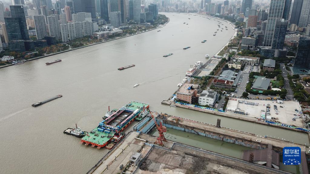 11月25日,“奮力”輪載著(zhù)長(cháng)江口二號古船??可虾4瑥S(chǎng)舊址1號船塢,準備進(jìn)塢。