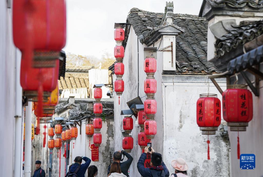 11月23日,游客在安徽省黃山市黟縣宏村內游覽。