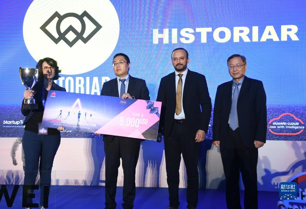中國華為公司與突尼斯政府相關(guān)機構25日在突尼斯舉辦扶持當地科技初創(chuàng )企業(yè)的“星火計劃”決賽并進(jìn)行頒獎。