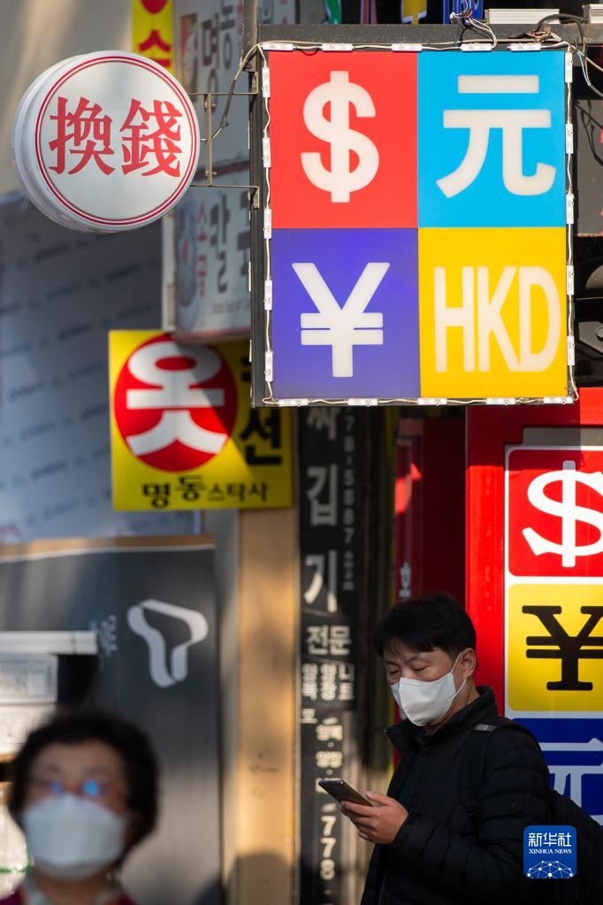這是11月24日在韓國首爾明洞街區拍攝的換錢(qián)所。