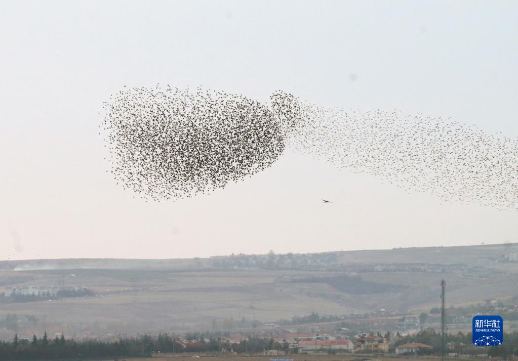 11月21日,一群椋鳥(niǎo)飛過(guò)土耳其安卡拉郊外的原野。