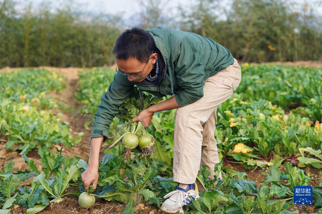 安徽省黃山市黟縣的新農人鄭濤是返鄉創(chuàng )業(yè)的大學(xué)生。從2021年起,他在流轉來(lái)的33畝土地上種植多種高品質(zhì)蔬菜,通過(guò)隨機搭配、網(wǎng)絡(luò )銷(xiāo)售的“蔬菜盲盒”模式,帶動(dòng)當地農民增收和產(chǎn)業(yè)發(fā)展。目前,鄭濤的蔬菜單日銷(xiāo)售峰值達到2000斤,成為新農人返鄉創(chuàng )業(yè)帶動(dòng)鄉村振興的一個(gè)縮影。