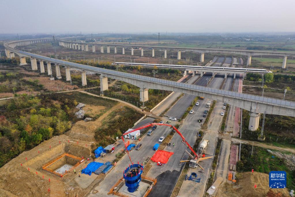 新華全媒+丨新建滬寧合高鐵安徽段首根墩身澆筑完成