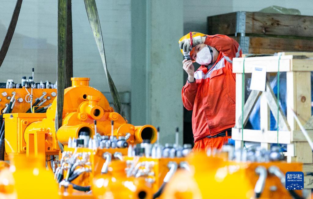 11月23日,工人在中鐵裝備集團車(chē)間內核對自制注漿泵液壓系統閥門(mén)型號。