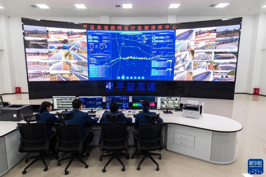 11月28日,工作人員在湖南平益高速路網(wǎng)運行監測指揮中心觀(guān)察高速路況等信息。