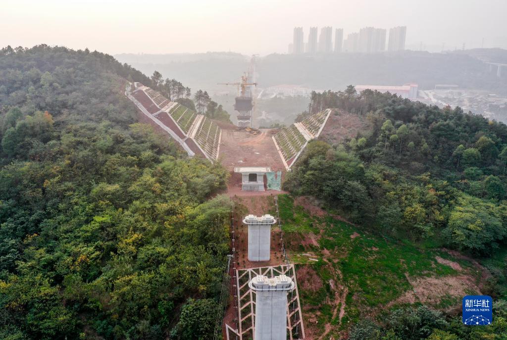 這是11月28日拍攝的建設中的渝昆高鐵川渝段華福大橋(無(wú)人機照片)。
