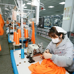 近日,山東省青島市即墨區紡織服裝企業(yè)外貿訂單充足,工人們加緊生產(chǎn),供應市場(chǎng)。