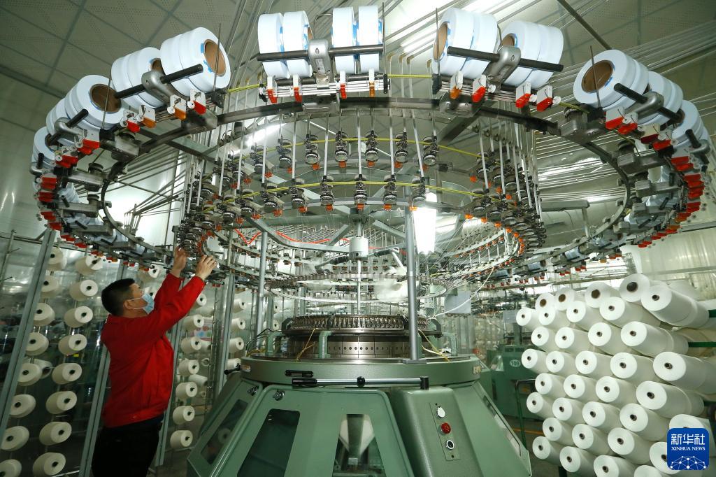 11月29日,山東青島頤和針織有限公司的紡織工人在生產(chǎn)出口到海外市場(chǎng)的服裝面料。