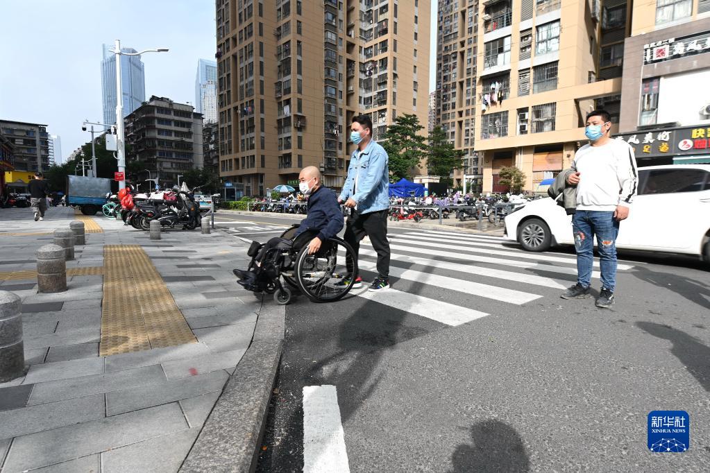 11月28日,輪椅車(chē)無(wú)障礙通過(guò)路面緣石坡道。
