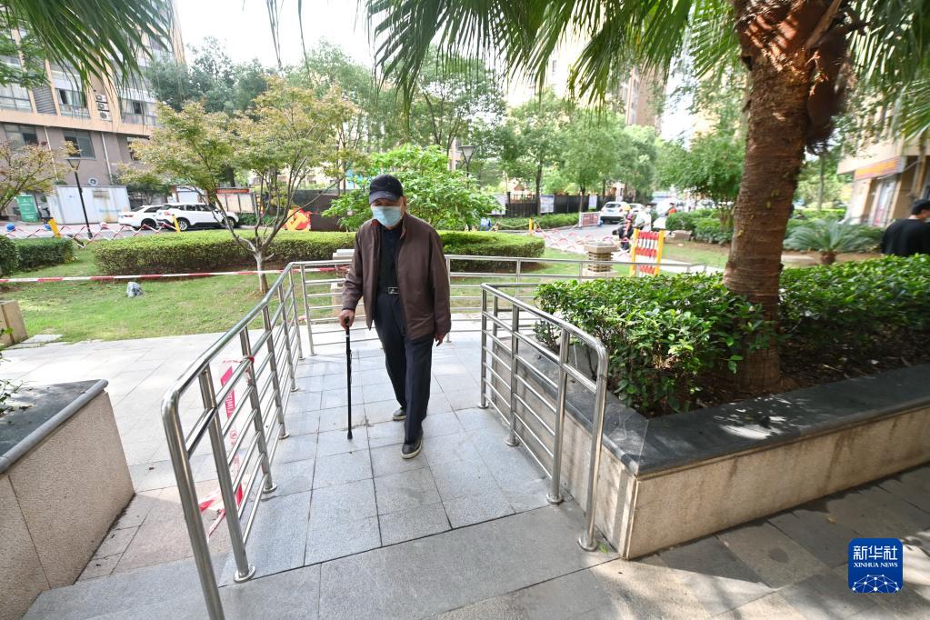 小區路面多坡化改造后,便于老人在小區散步,打通了老人無(wú)障礙通行的“最后一階”(11月28日攝)。