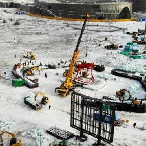 哈爾濱冰雪大世界冰建施工有序展開(kāi)