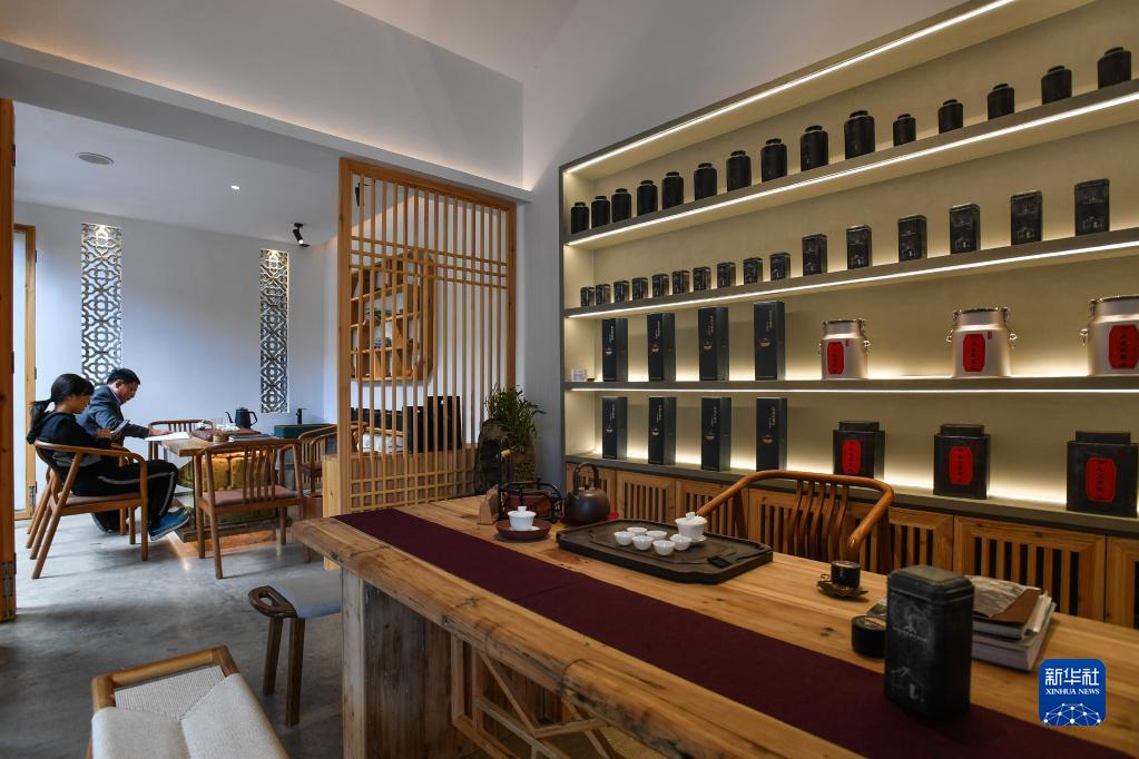 在潮州鳳凰單叢茶核心產(chǎn)區鳳凰鎮,由當地老宅修繕改造而成的民宿為客人準備了沖泡工夫茶的休閑空間(2021年12月15日攝)。