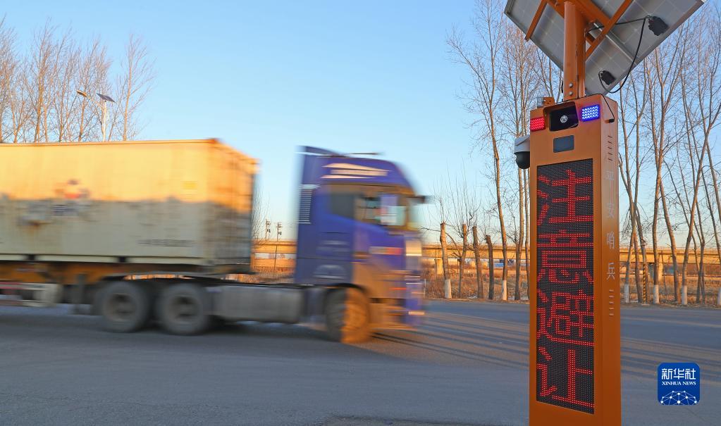 12月1日,在沈陽(yáng)市沈營(yíng)線(xiàn)蘇家屯段一交叉口,沈陽(yáng)市公安局交通警察局蘇家屯大隊設立的“平安哨兵”(無(wú)人電子提醒喇叭)提醒過(guò)往車(chē)輛減速慢行。