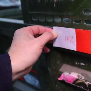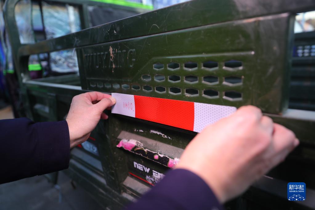 12月1日,沈陽(yáng)市公安局交通警察局蘇家屯大隊交警給農用三輪車(chē)粘貼反光條。
