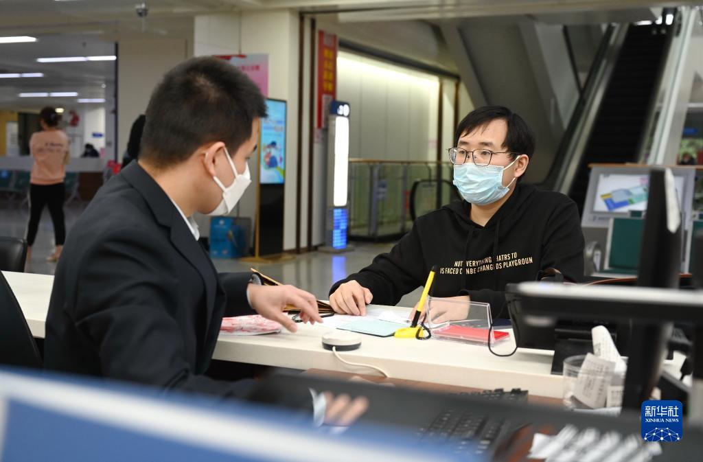 12月1日,工作人員在福州市政務(wù)服務(wù)中心“一件事”綜合窗口為市民(右)辦理子女醫療保險手續及申領(lǐng)醫??ǖ确?wù)。
