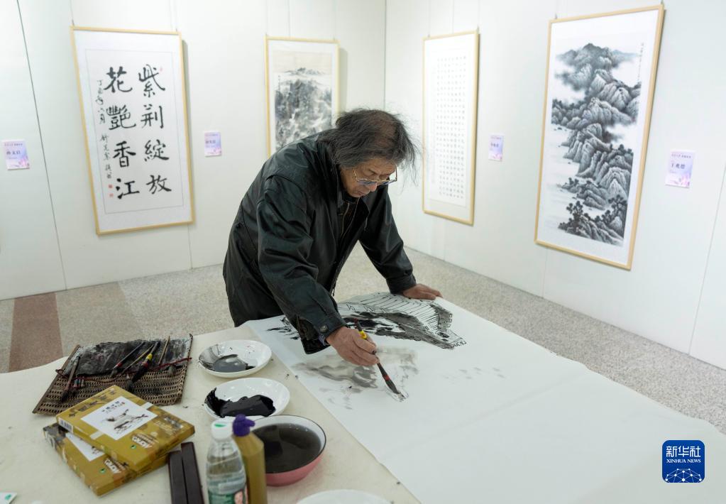 12月3日,在北京民族文化宮舉行的共享芬芳·共鑄美好——“仁美”書(shū)畫(huà)攝影展上,殘疾人書(shū)畫(huà)家劉德霖現場(chǎng)進(jìn)行筆會(huì )交流。