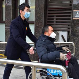 江西省南昌市紅谷灘區市民中心的工作人員推著(zhù)市民劉順保通過(guò)無(wú)障礙通道前往中心大廳(12月2日攝)。