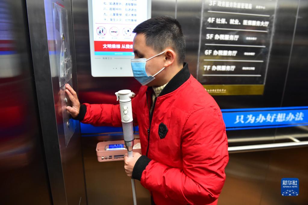 市民陳銳在江西省南昌市紅谷灘區市民中心使用無(wú)障礙電梯(12月2日攝)。新華社記者 彭昭之 攝