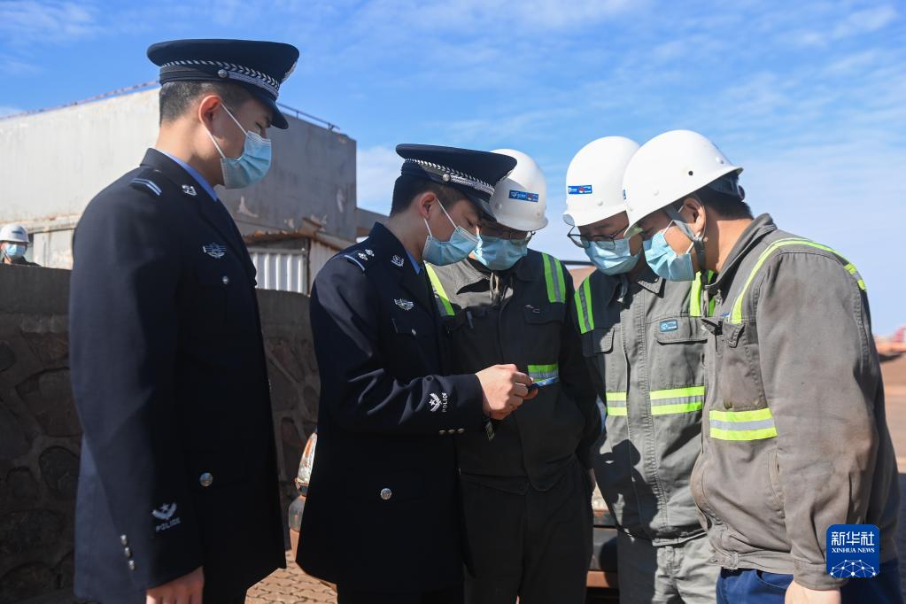12月7日,舟山出入境邊防檢查站民警指導幫助鼠浪湖碼頭員工熟悉邊檢行政許可網(wǎng)上窗口登輪證的申請流程。