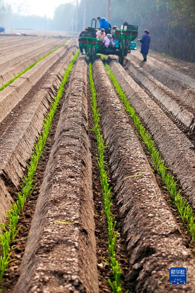 12月7日,在河南省焦作市博愛(ài)縣下期城村,村民在種植大蔥。