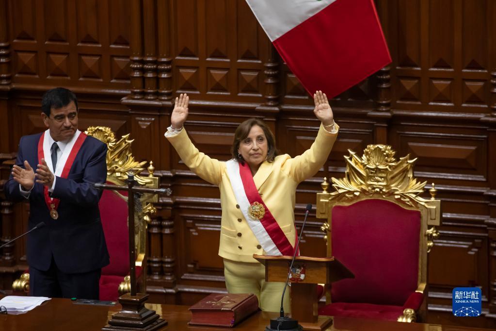 12月7日,在秘魯利馬,迪娜·博盧阿特(右)在國會(huì )宣誓就任總統。
