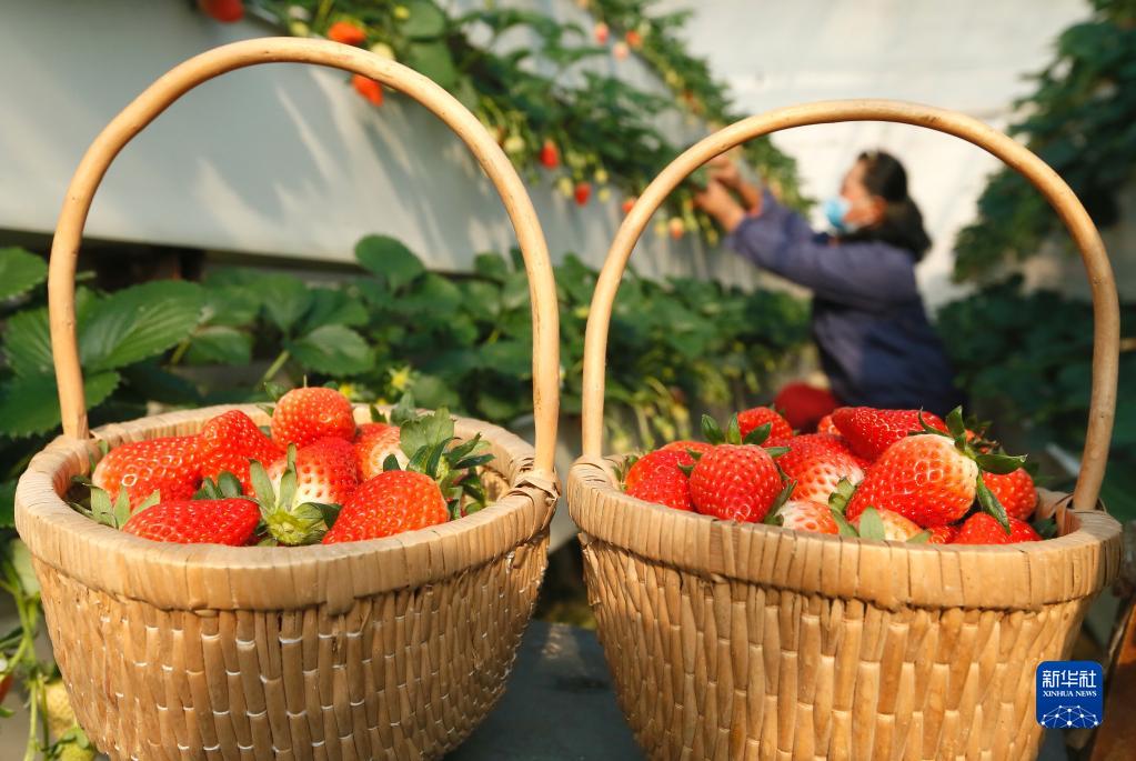 山東即墨:“立體草莓”迎豐收