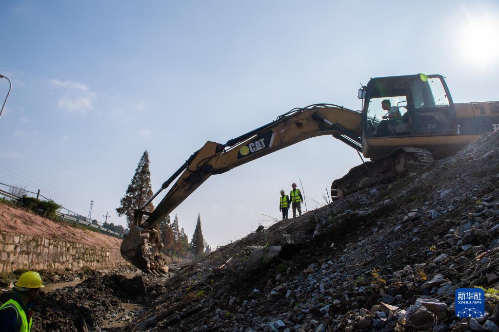 12月8日,工作人員在長(cháng)沙縣金井鎮湘豐村金脫河河道提質(zhì)改造項目建設現場(chǎng)施工。