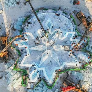 哈爾濱冰雪大世界冰建施工總體進(jìn)度過(guò)半