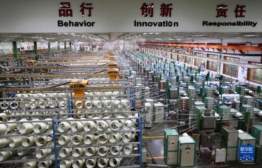 這是9月7日在埃及蘇伊士省蘇赫奈泉港拍攝的中國巨石埃及玻璃纖維股份有限公司(巨石埃及)生產(chǎn)車(chē)間。