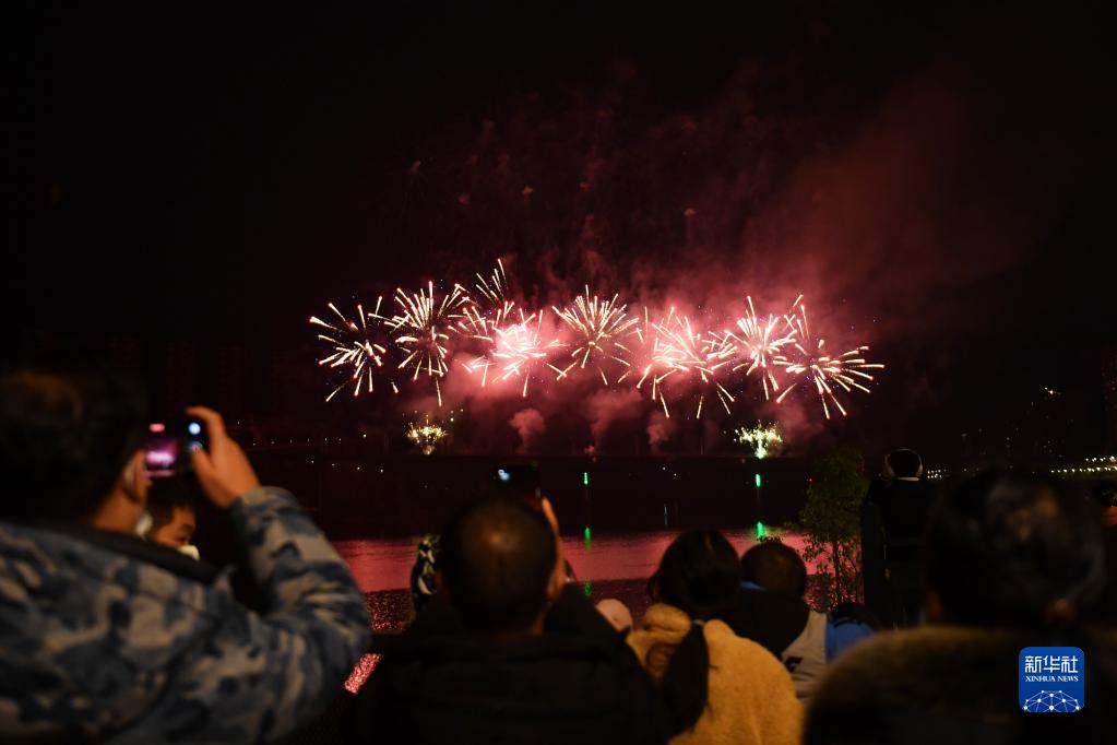 12月9日,游客在湖南懷化洪江古商城觀(guān)看煙花表演。