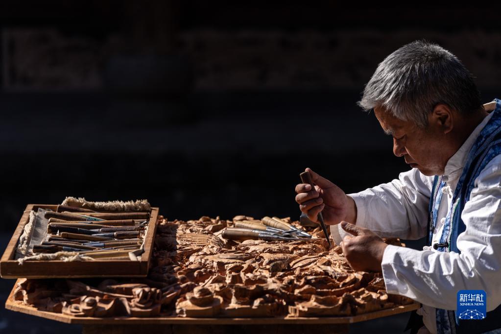 出生于劍川白族農村的段四興,是劍川木雕國家級非遺代表性傳承人。為傳承技藝,段四興在家鄉開(kāi)起了木雕傳習院,廣招學(xué)徒,鼓勵學(xué)生在木雕中加入流行元素,開(kāi)發(fā)創(chuàng )意作品。如今,在段四興等人的努力下,劍川縣從事木雕工作者達兩萬(wàn)余人。