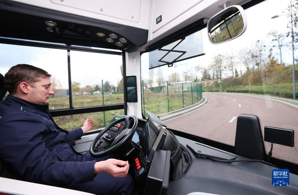 12月7日,法國巴黎大眾運輸公司公交司機“駕駛”中車(chē)電動(dòng)制造的自動(dòng)駕駛客車(chē)。