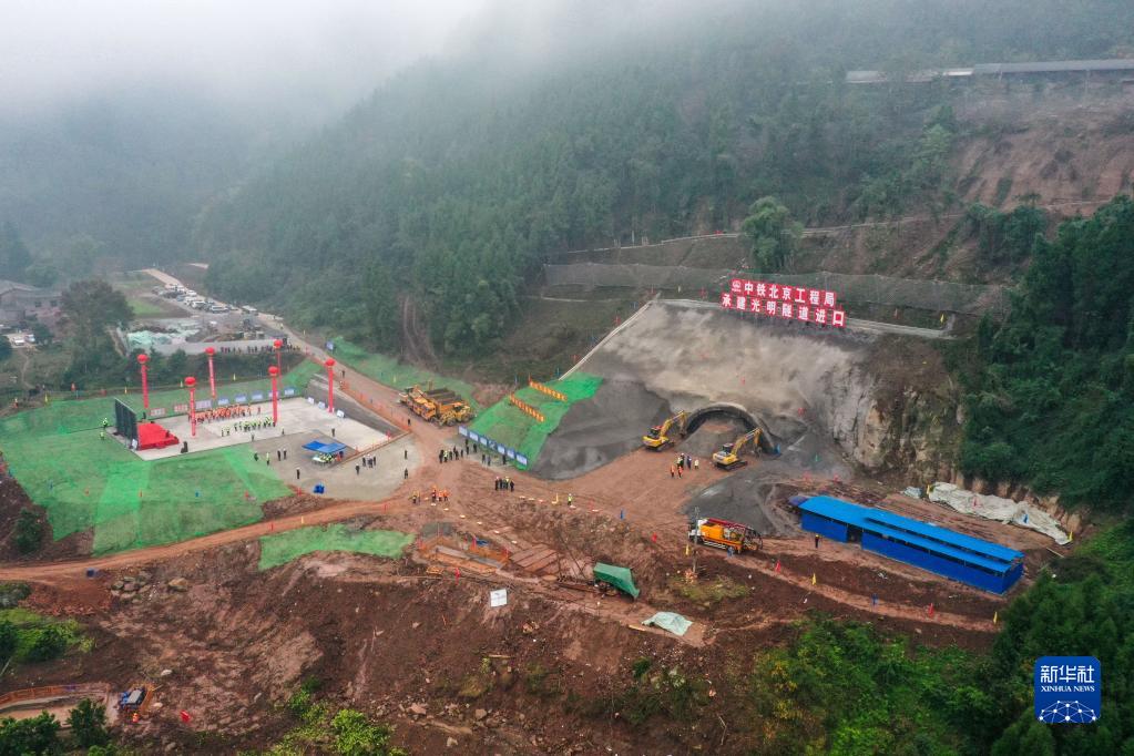 這是12月11日拍攝的由中鐵北京工程局承建的成達萬(wàn)高鐵光明隧道施工現場(chǎng)(無(wú)人機照片)。