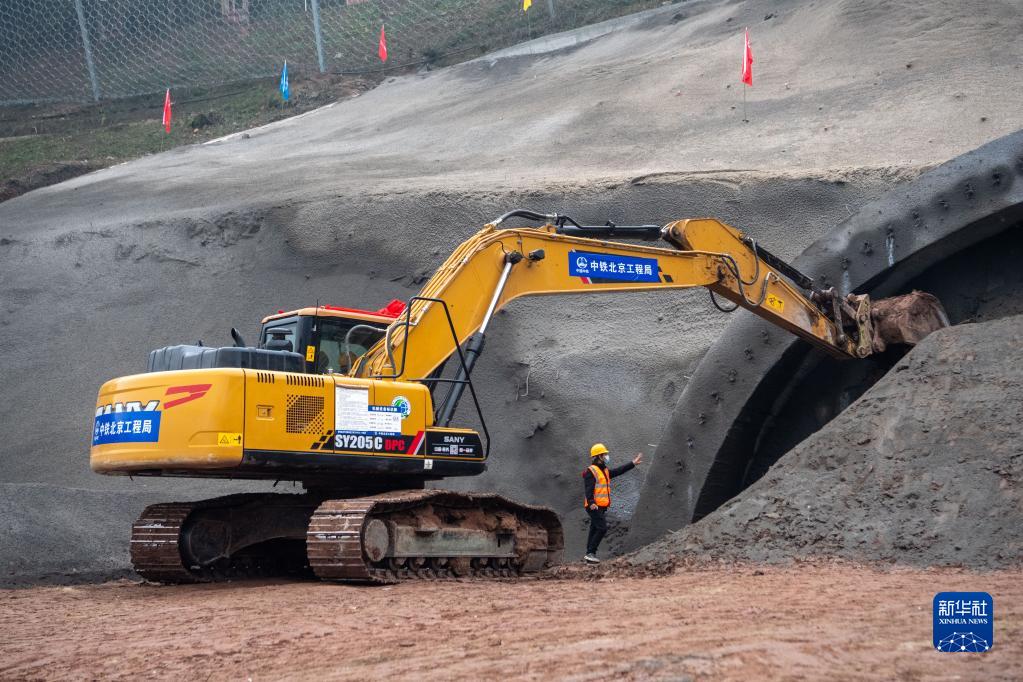 12月11日,工程機械在成達萬(wàn)高鐵光明隧道施工現場(chǎng)作業(yè)。