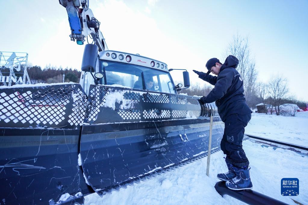 V-PARK地形公園成員在進(jìn)行公園跳臺施工(12月9日攝)。