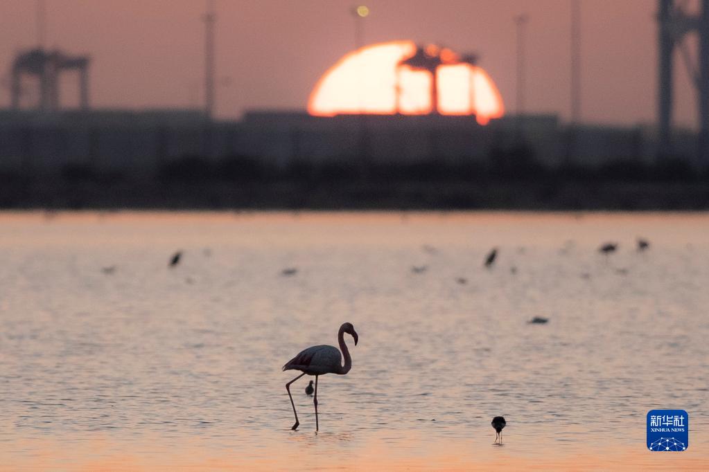 這是12月12日在埃及塞得港省福阿德港自然保護區拍攝的火烈鳥(niǎo)。