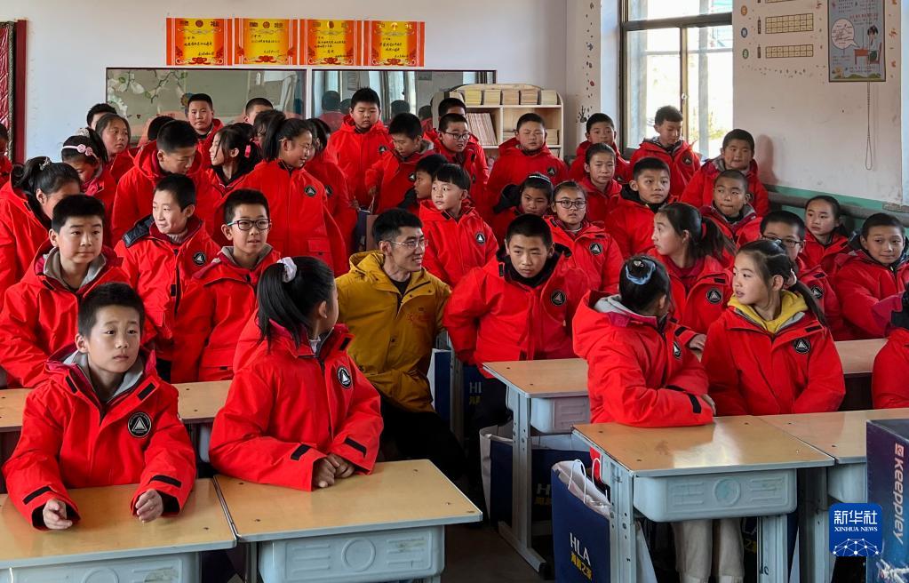 2021年11月18日,劉博洋(中)在山西一所鄉村小學(xué)參加公益科普活動(dòng)。