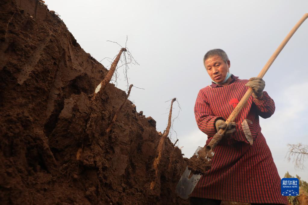 12月12日,溫縣番田鎮余村農民在田間采挖鐵棍山藥。
