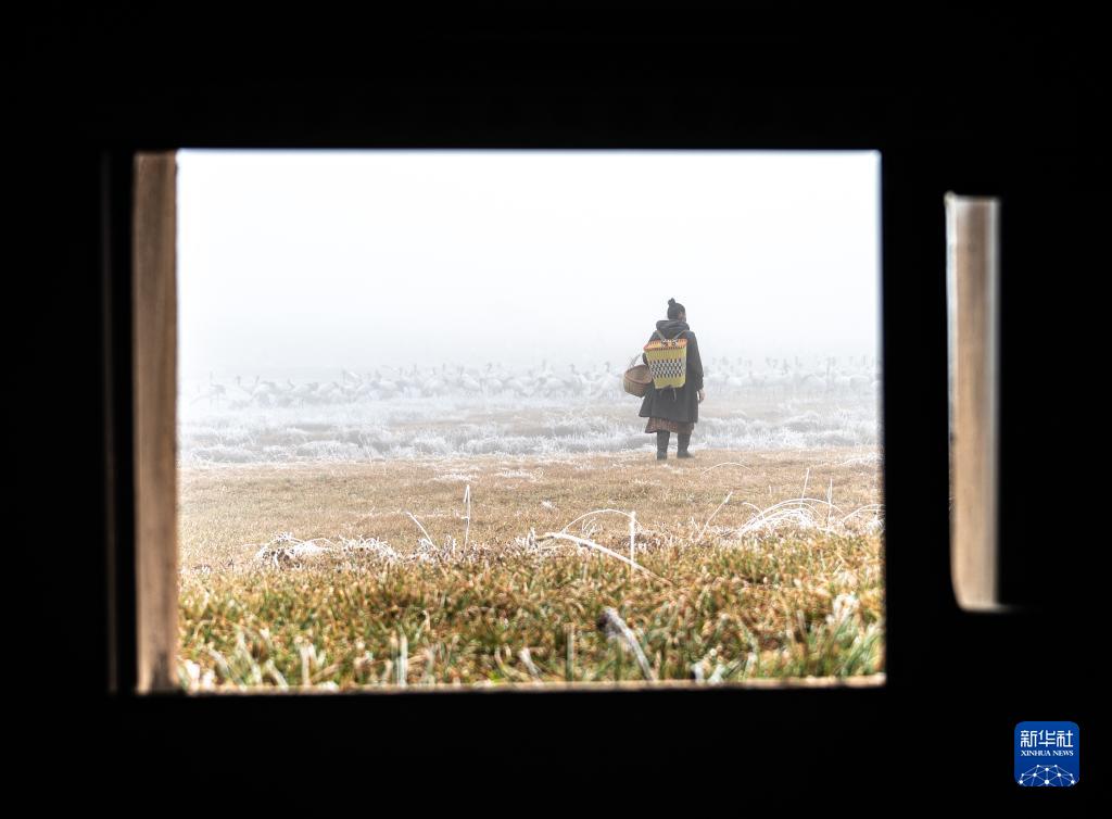 12月10日,陳光會(huì )在云南大山包黑頸鶴國家級自然保護區給黑頸鶴投食。