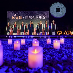 這是12月13日在侵華日軍南京大屠殺遇難同胞紀念館拍攝的“燭光祭”活動(dòng)現場(chǎng)。