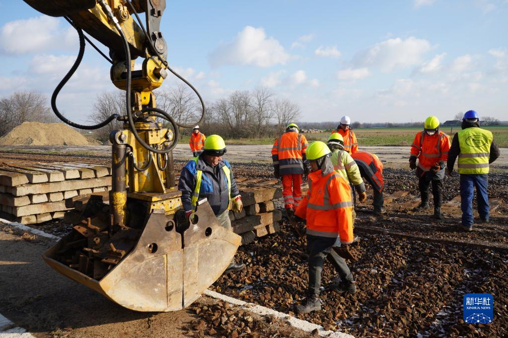 這是12月12日在匈牙利陶克紹尼拍攝的匈塞鐵路匈牙利段施工現場(chǎng)。
