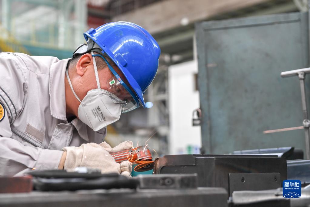 12月14日,在位于長(cháng)春的一汽解放汽車(chē)有限公司卡車(chē)廠(chǎng)沖壓車(chē)間,馮斌打磨沖壓模具。