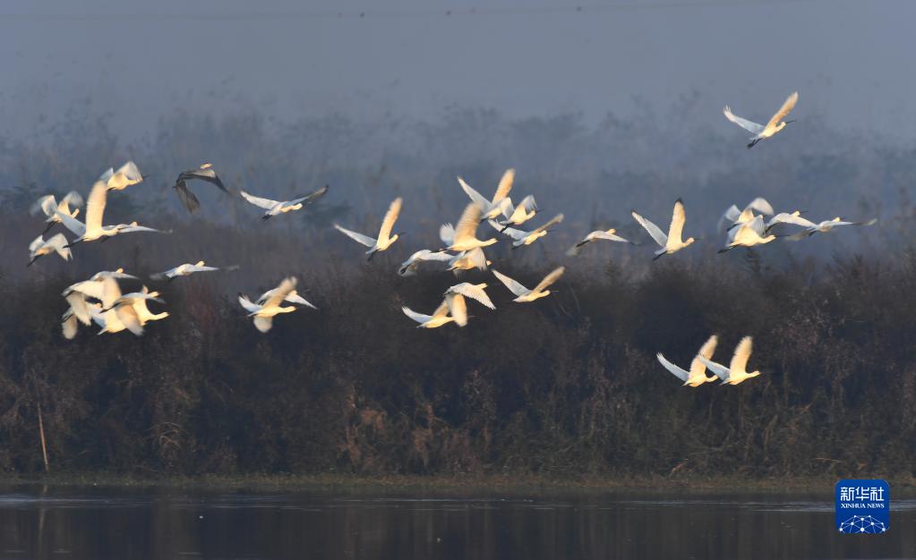 入冬以來(lái),大批候鳥(niǎo)南飛抵達洞庭湖區。