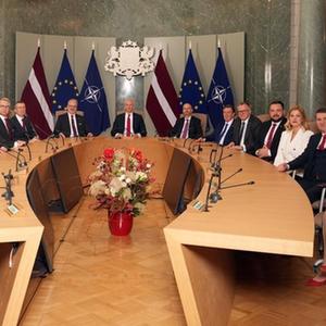 12月14日,在拉脫維亞首都里加,拉總統萊維茨(左八)出席新一屆政府第一次會(huì )議。