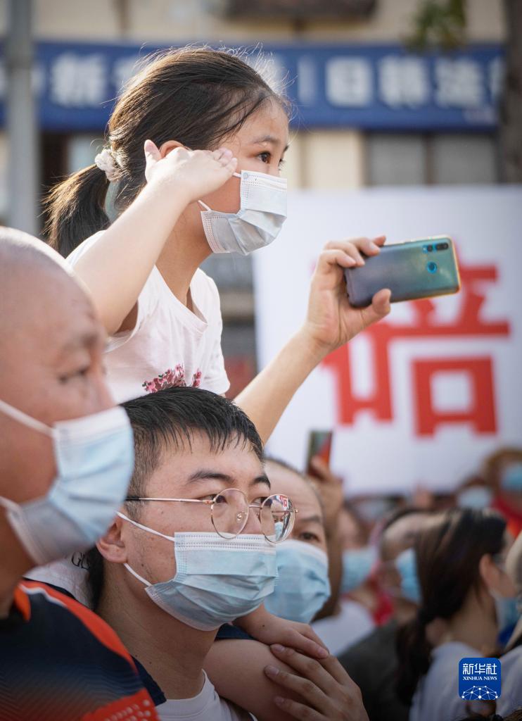 這是8月28日,在重慶市北碚區,一名小女孩向完成山火撲救任務(wù)后撤離的云南森林消防隊車(chē)隊敬禮。